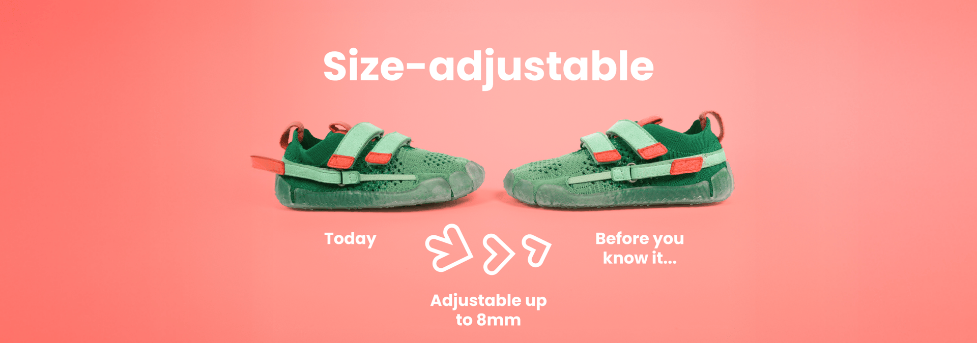 Regular shoes come in fixed sizes, but children’s feet are constantly growing, often very quickly. As a result, shoes often become too small shortly after being purchased.